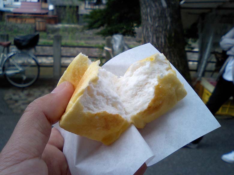 初めて食べた、和菓子「おわら玉天」に感動☆ 焼きたてだから、まわりがパリパリで中身がフワッフワ!!食感はものっすごいふわふわのはんぺんとでも言いましょうか?あったかで、あまくてほっこりするお味♪
