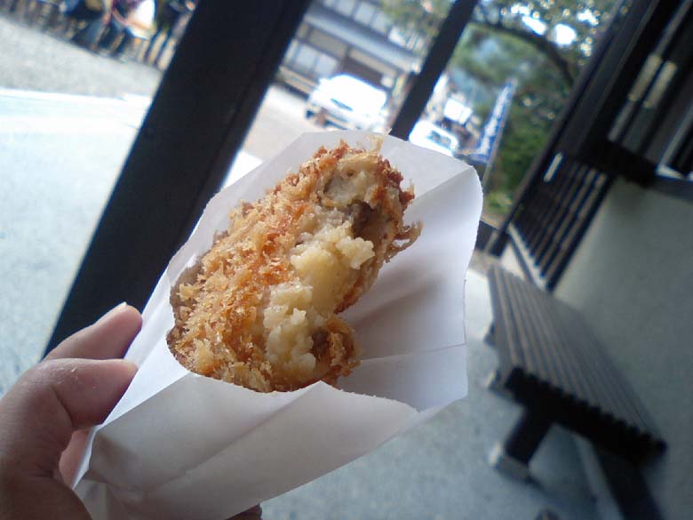 生の手作りコロッケで、飛騨牛もミンチでなく細切れにして使ってるんだって。おいしいはずだ~。